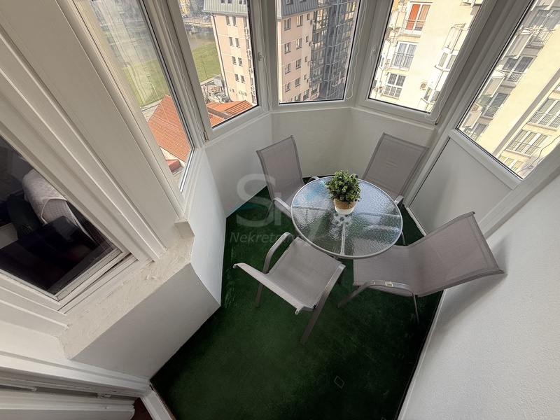 Stan se prodaje kompletno namješten. Nalazi se na šestom spratu zgrade sa liftom. U zgradu je moguće ući sa dvije strane. Pored toga, stan ima pripadajući podrum. Stan je sjeverozapadne orijentacije, odličnog rasporeda i na odličnoj lokaciji. Stanje stana je dobro, s tim da su potrebna neka manja ulaganja (vanjska stolarija).