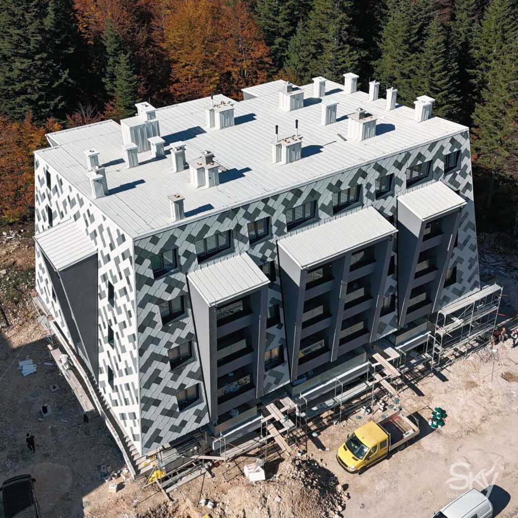– Fasada i krov vrhunske kvalitete izrađen od svjetski poznatog austrijskog proizvođača “Prefa”, sa termoizolacijom od mineralnih ploča i aluminijskim rombovima.