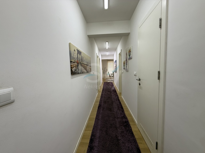 Stan se sastoji od dnevnog boravka sa kuhinjom i trpezarijom, tri spavaće sobe od kojih je jedna master soba sa vlastitim kupatilom i garderoberom, drugog kupatila, vešeraja, hodnika i balkona sa otvorenim pogledom.
