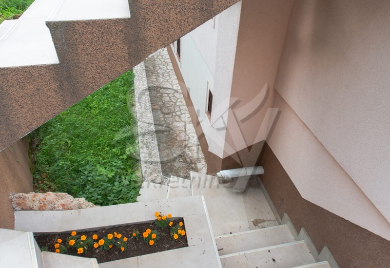 - Dodatni prostori: Garaža sa odvojenim prostorom za ogrjev, terasa iznad garaže (20 m²), dvorište sa baštom i kamenom terasom.